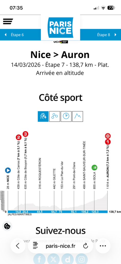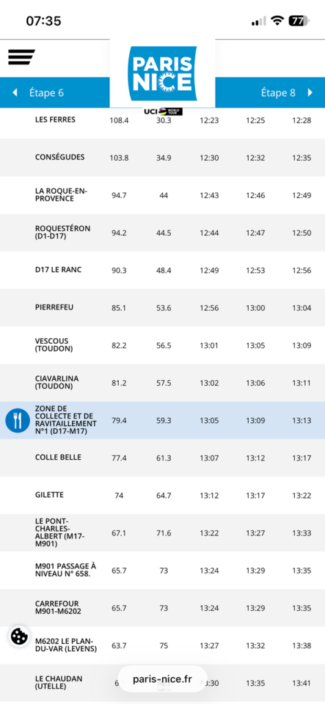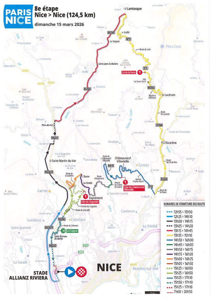 Épreuve « NICE>AURON » du PARIS-NICE – route de Roquestéron (RD17) coupée le 14 mars de 13h00 à 13h30 jusqu’au Pont Charles-Albert (M17 – GILETTE) ![]()