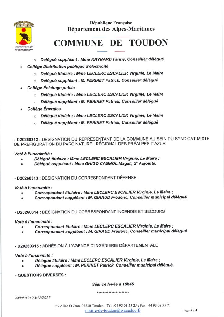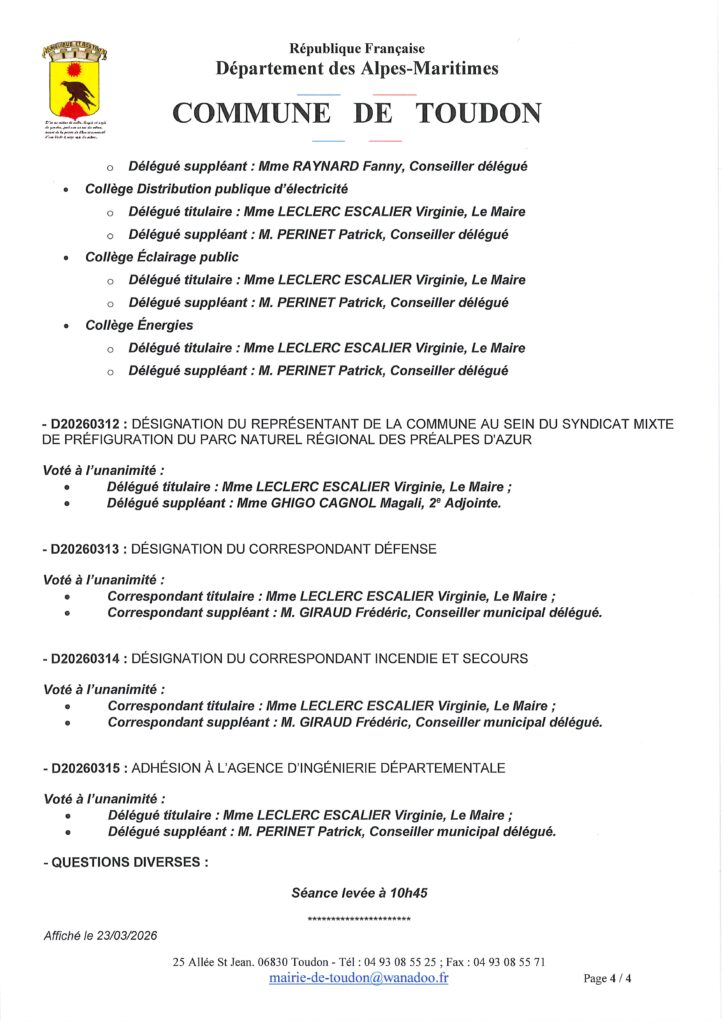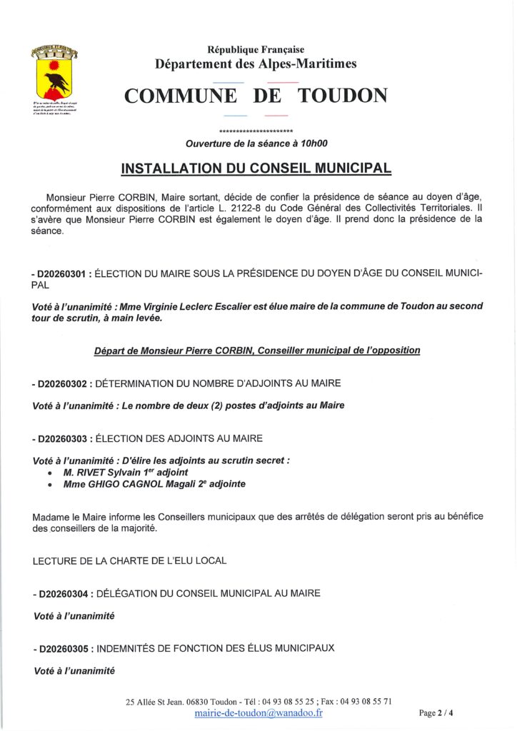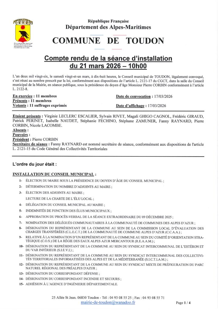 Compte rendu du Conseille municipal d’Installation du 21 mars 2026