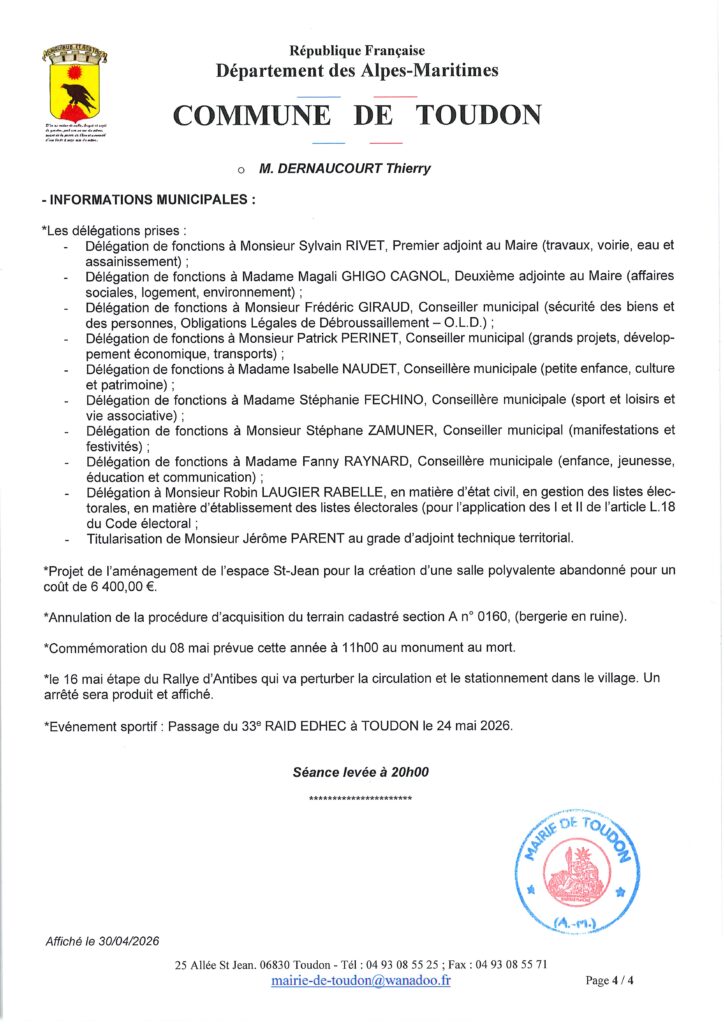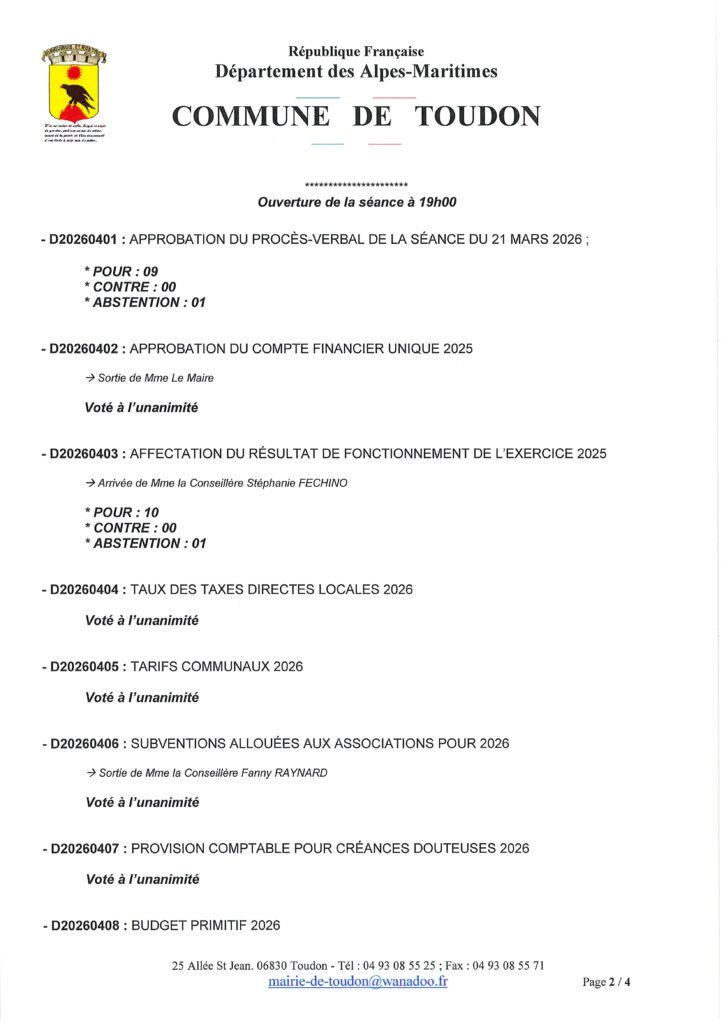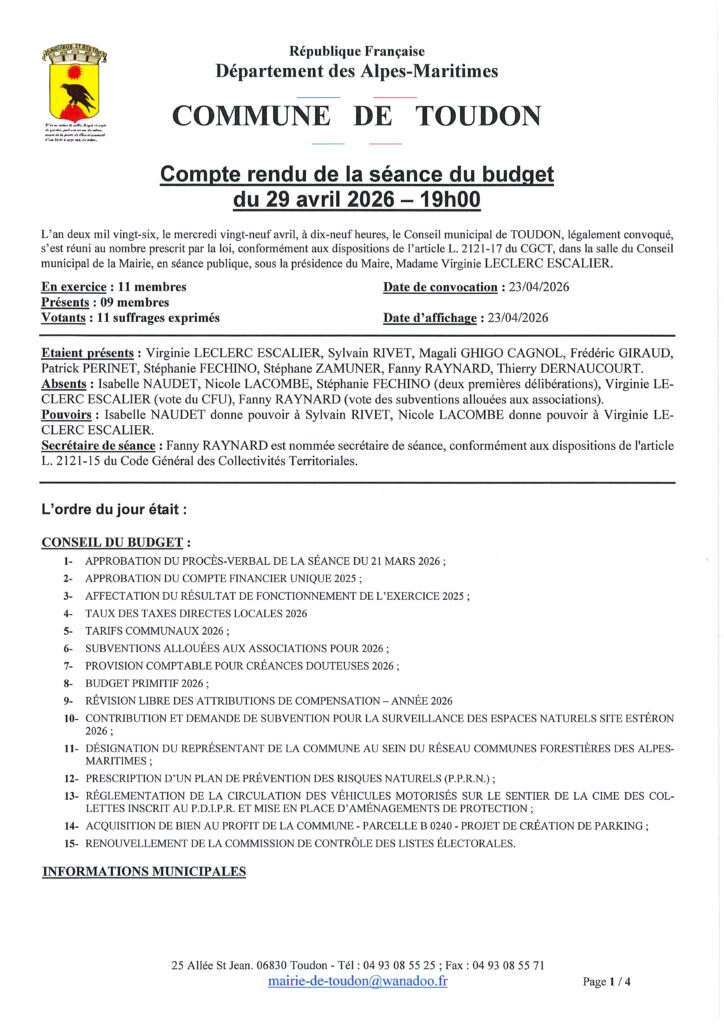 Compte rendu du Conseille municipal du budget 29 avril 2026