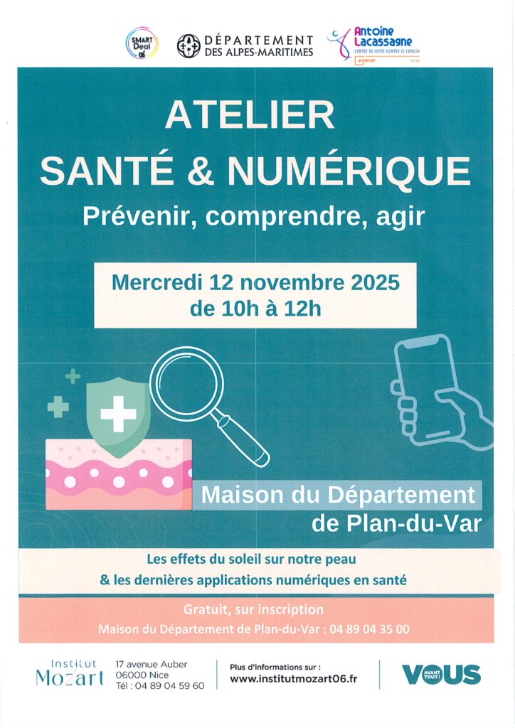 • La Maison du Département de Plan-du-Var : 04 89 04 35 00 – Atelier de Plan-Du-Var le Mercredi 12 novembre (10h – 12h)