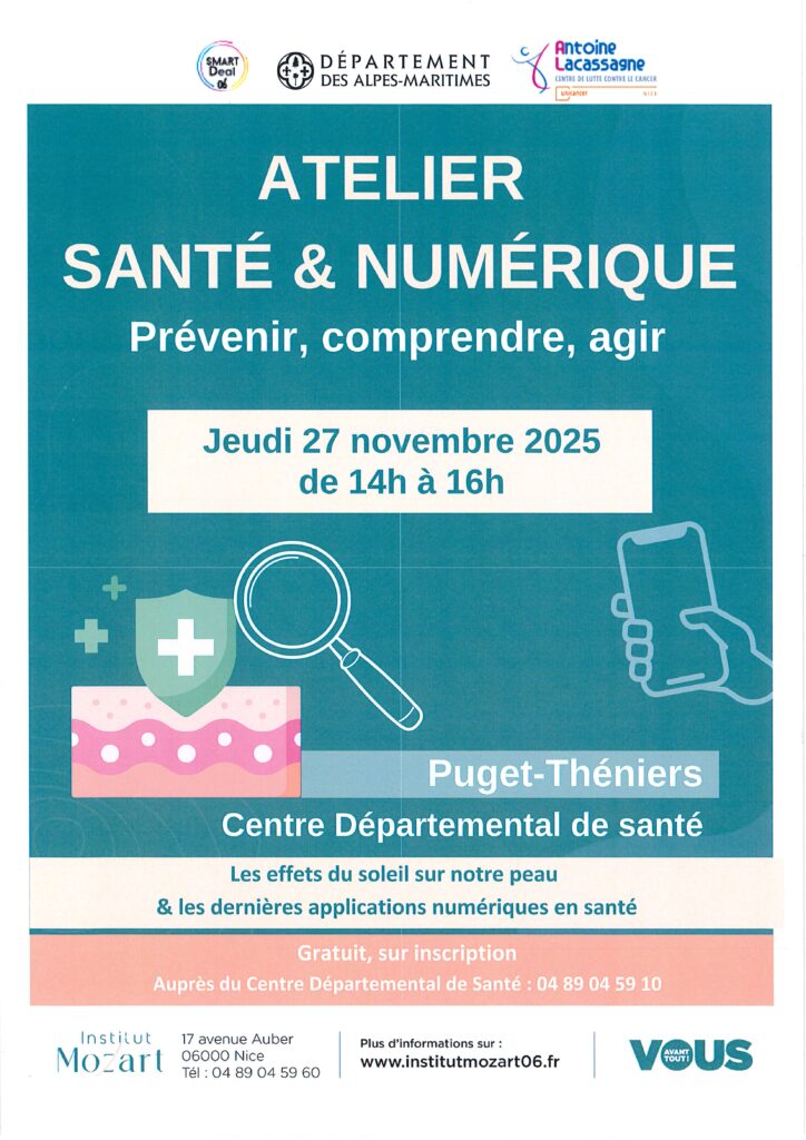 • Le Centre Départemental de Santé : 04 89 04 59 10 – Atelier de Puget-Théniers Jeudi 27 novembre (14h-16h