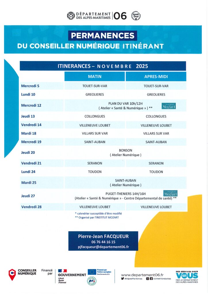 Permanences du Conseiller Numérique Itinérant NOVEMBRE 2025